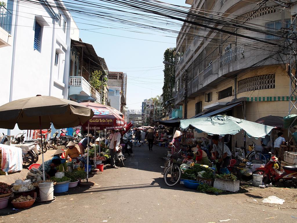 1番のバスで、ベンタン市場のバスセンターから終点のChợ Lớnバスセンターに行くのが多いと思いますが、Chợ Lớnバスセンターに到着する直前に路上でたくさんの野菜や果物を売っている場所に気付いた人いますか?